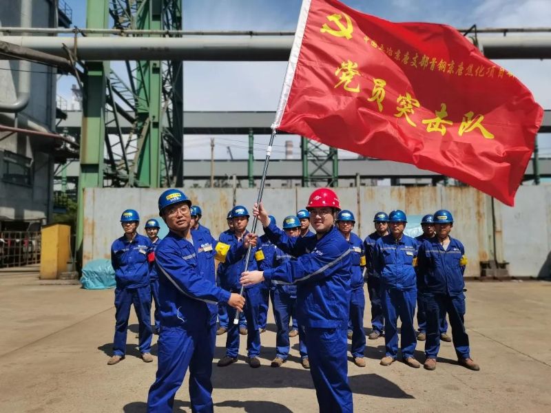 为坚决贯彻落实好上级党委“党旗飘扬、党徽闪光”活动要求,坚持把党的领导融入到基层生产经营,充分发挥好基层党支部战斗堡垒和党员先锋模范作用, 5月28日上午,工程技术服务公司京唐分公司举行了“党旗飘扬、党徽闪光”行动“四个一批”授牌授旗仪式,球友会副总经理汪忠旭为京唐分公司进行“党员先锋项目”授牌,公司党委书记、经理丁川为焦化项目进行“党员突击队”授旗。