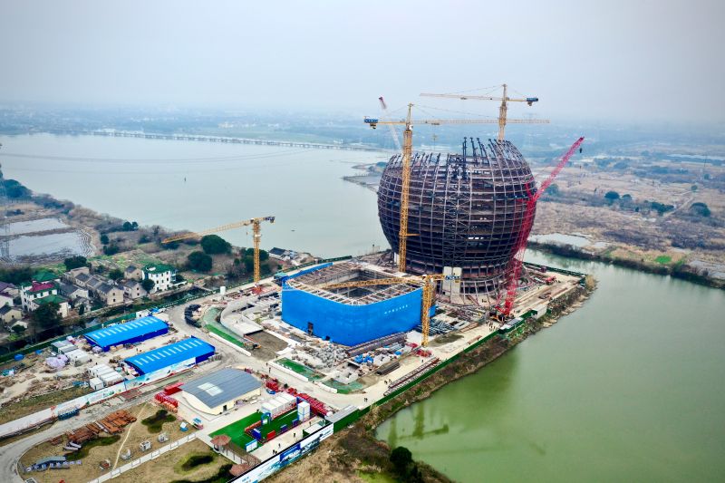 湖州市南浔区“太阳酒店·水晶晶广场”项目规划用地面积约330亩,总建筑面积约22万平方米,分为“太阳酒店”“水晶晶广场”两个区块。其中太阳酒店是一座集住宿、餐饮、娱乐、旅游等多功能一体的五星级综合性酒店,形态为一座高98.7米、直径97.2米的19层球体建筑,建成后将成为世界最大的球体建筑。
