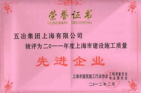 2011 Shanghai Anual Construction Quality Advanced Company