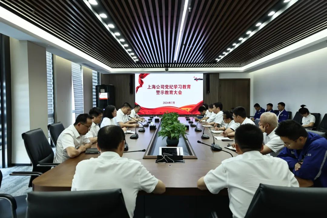 7月31日,为深入领会习近平总书记关于全面加强党的纪律建设的重要论述,落实党纪学习教育部署安排,上海公司召开党纪学习教育警示教育大会,公司党总支书记郝大伟出席会议并讲话,公司党总支副书记孔艳秋主持会议并通报相关典型案例,公司领导班子成员、机关部门主管、项目班子成员、项目关键岗位人员参加。