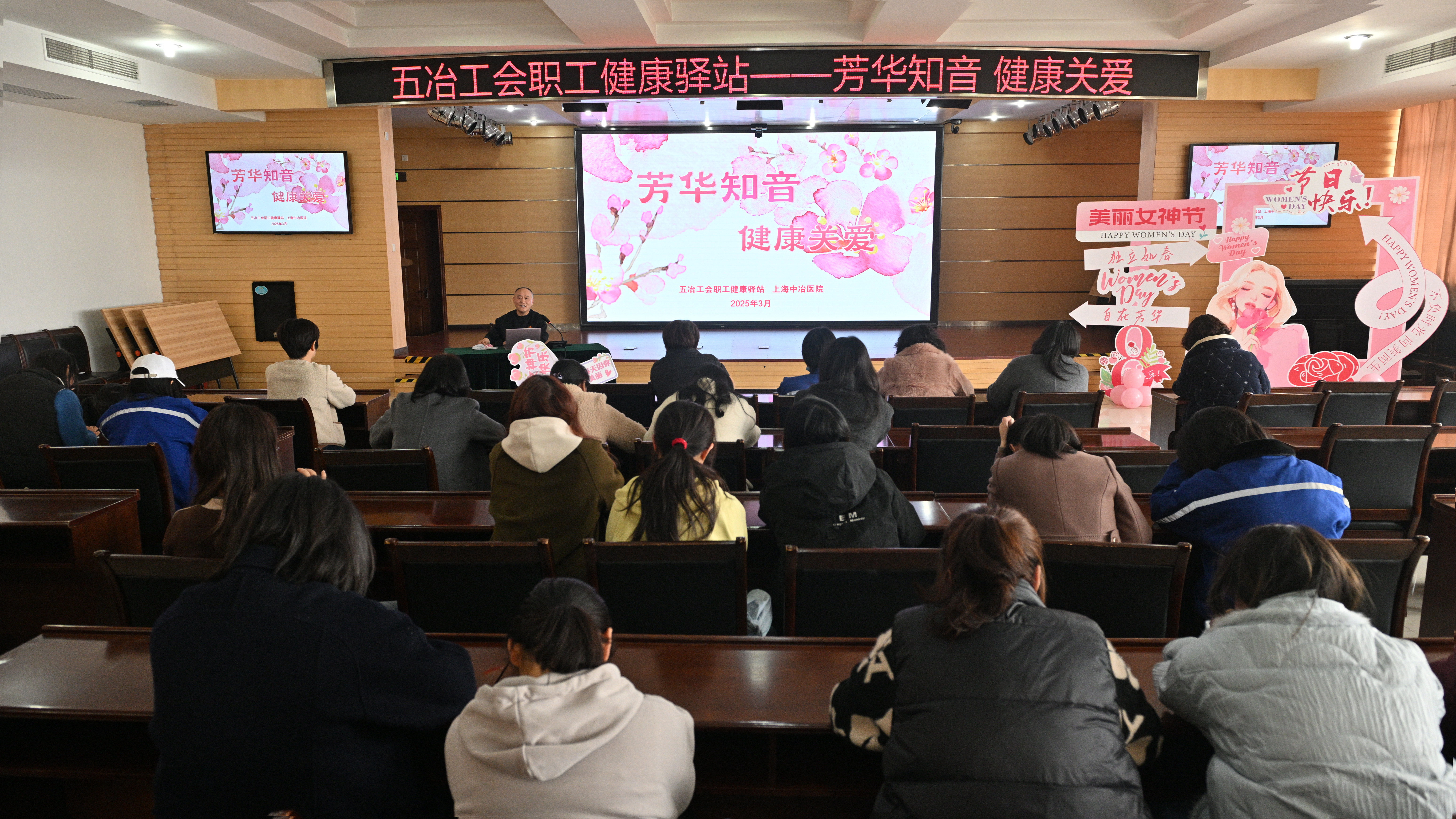 活动特邀上海中冶医院妇科专家沈紫丹、皮肤科专家桑忠强担任主讲嘉宾,他们结合女性常见疾病的种类、症状危害、预防措施、保健方法、女性皮肤护理等主题,用通俗易懂的语言和真实案例,为现场女职工普及科学保健知识。此次讲座还特别针对女性职场压力、久站久坐引发的健康隐患提供实用建议,如简易肩颈操、饮食调理技巧等,现场互动频繁,掌声不断。