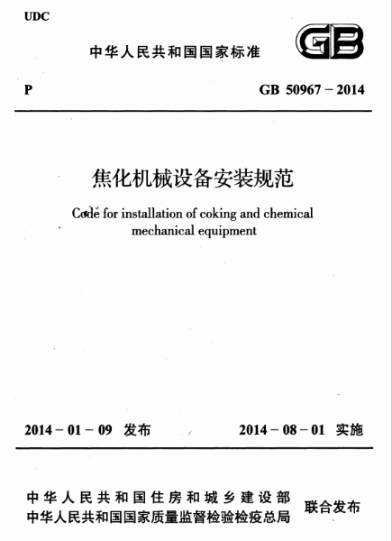 主编国家规范《焦化机械设备安装规范》GB50967-2014。