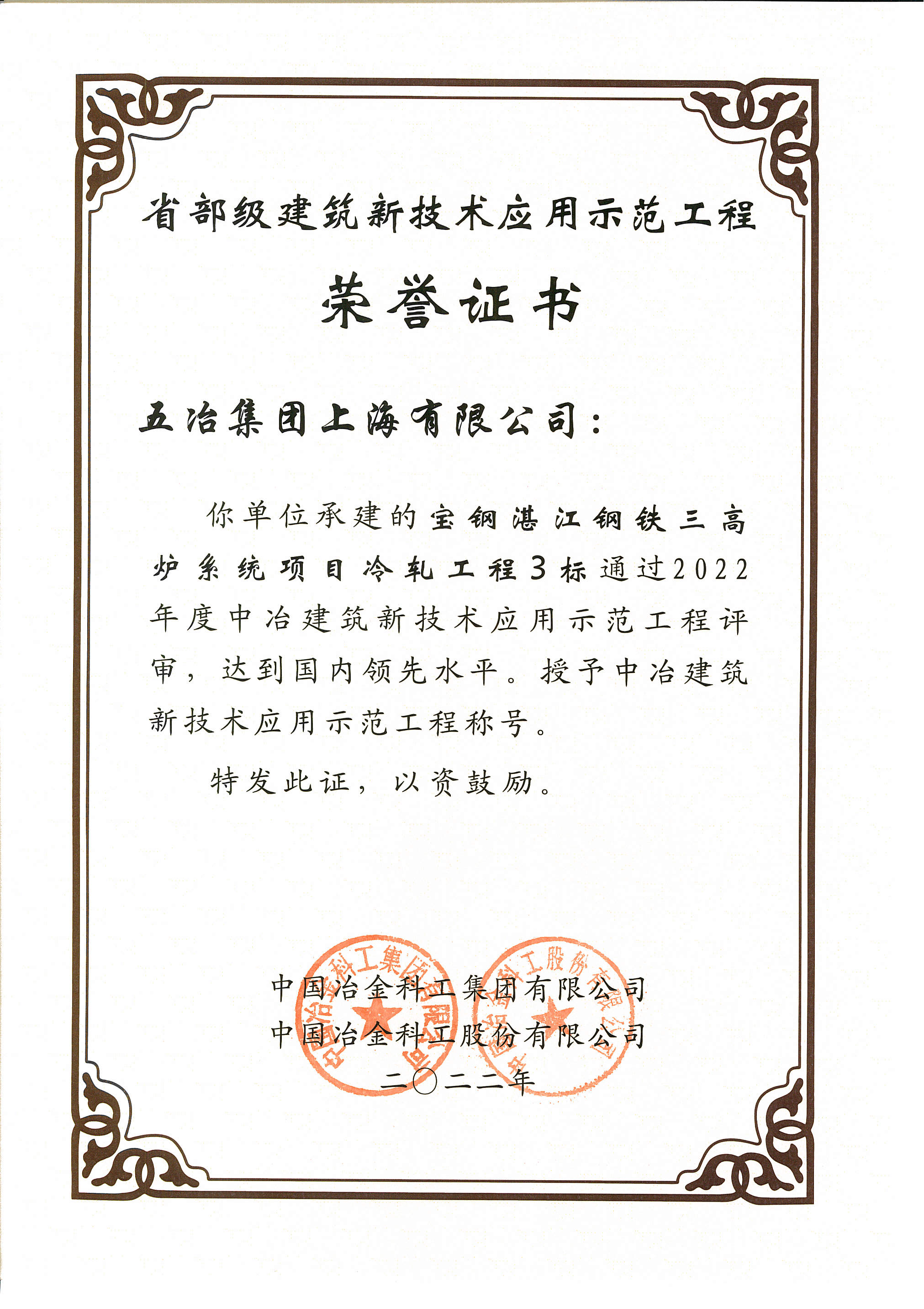 2022年宝钢湛江钢铁三高炉系统项目冷轧工程3标-国内领先